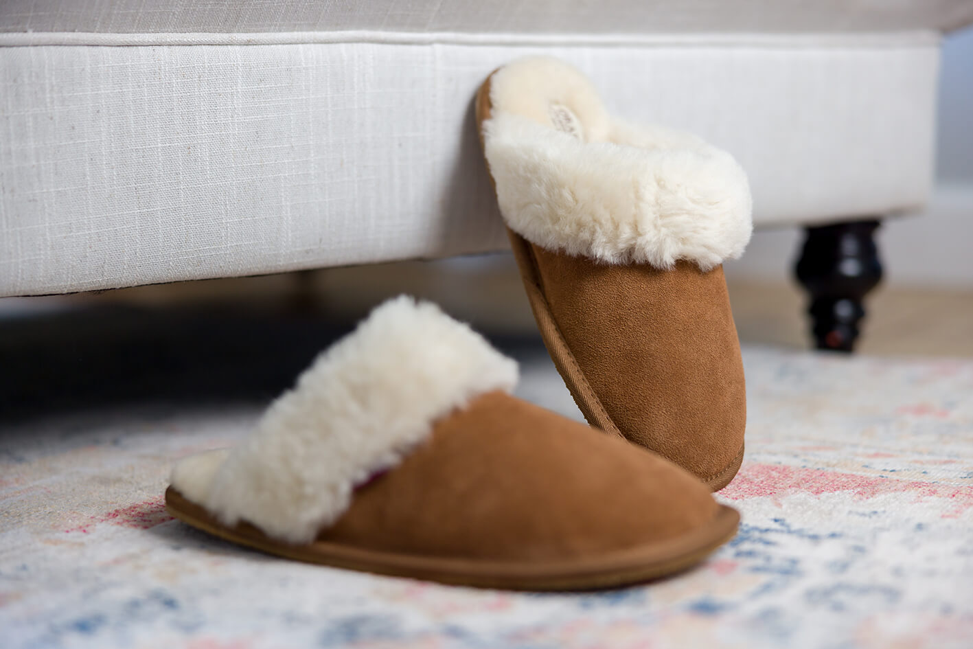 At first, it is normal for sheepskin lined slippers and boots to feel a little tight. The sheepskin will bed down and mould to the shape of your foot and feel completely normal with a short amount of wear, so this is nothing to worry about. We recommend ordering your normal shoe size. If you are a half size, then we recommend buying a size up.