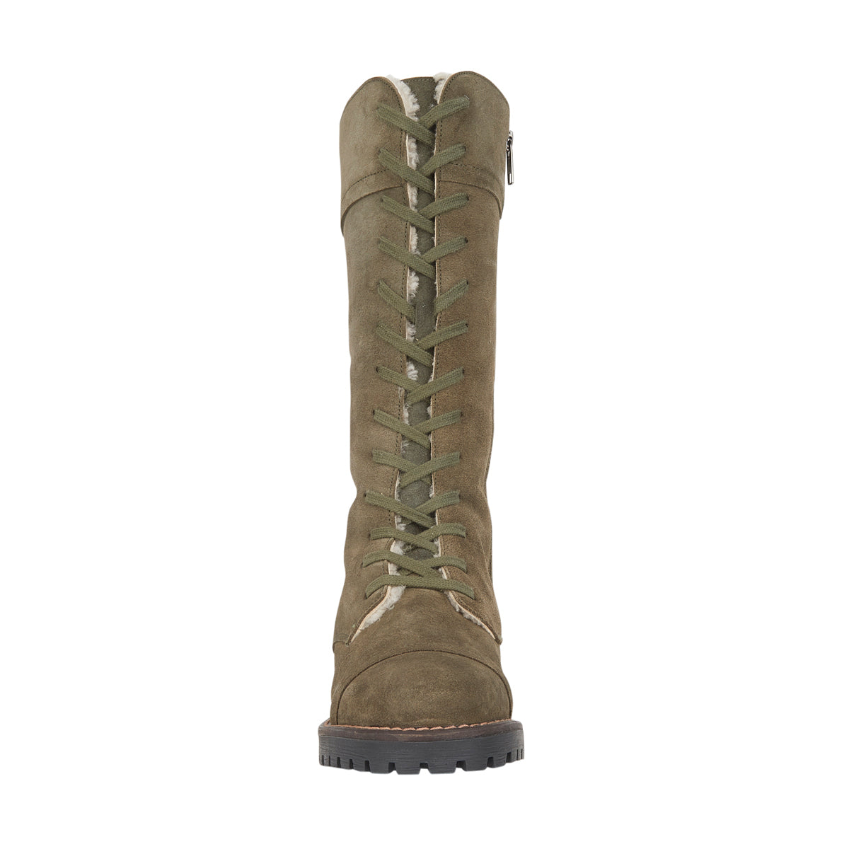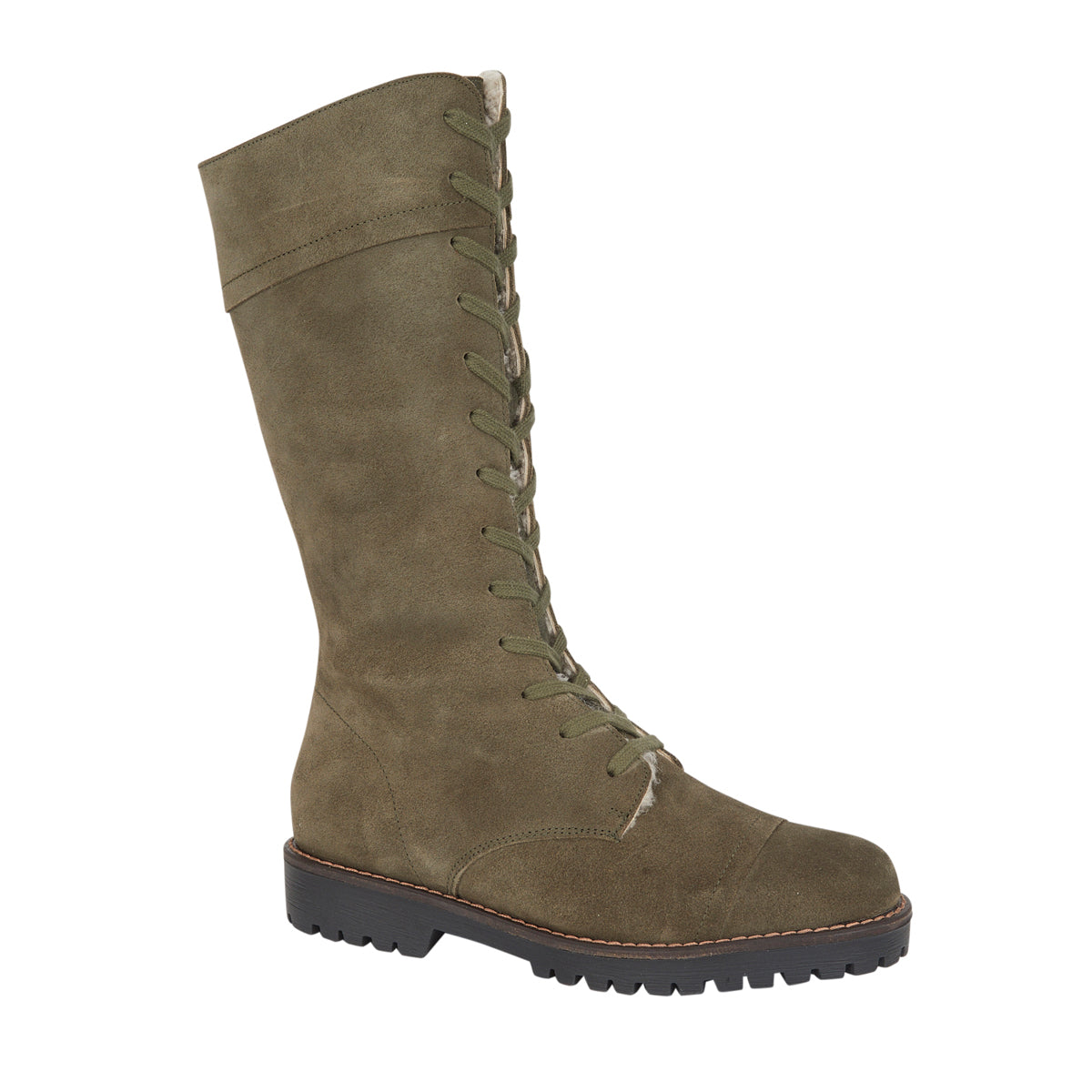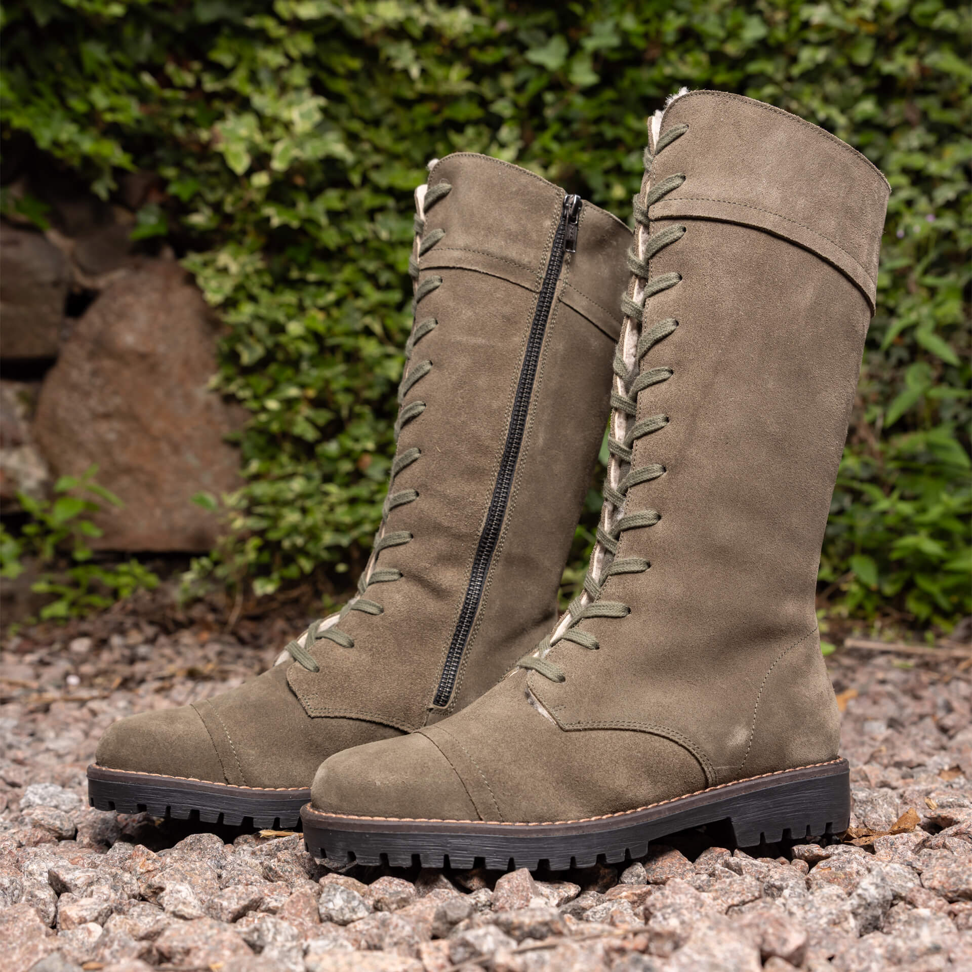 Our new ladies sheepskin boot, made with a suede upper, sheepskin lining and durable non slip rubber sole.