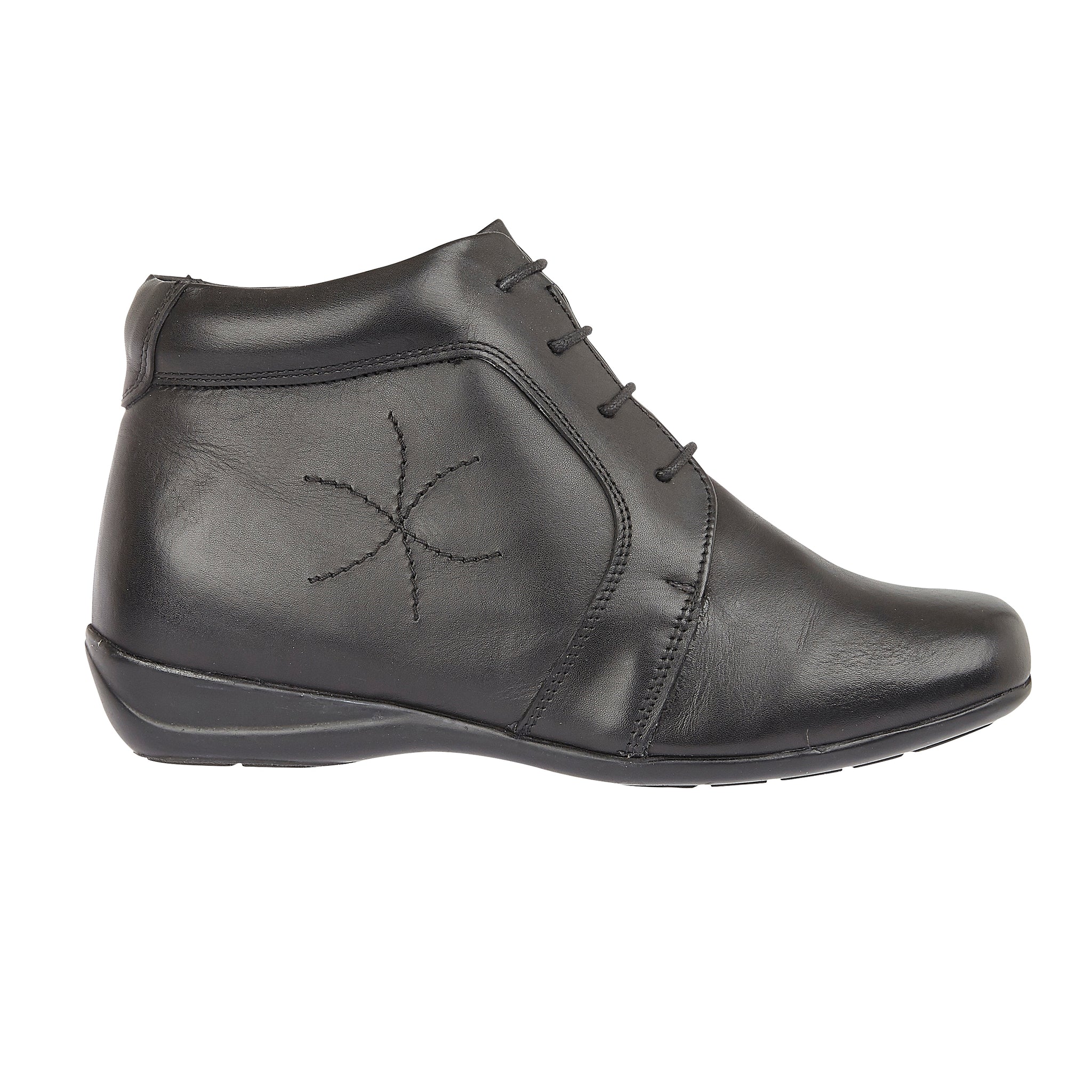 Our lace up ankle boot. Made with a soft leather upper, leather insole and hard wearing sole. The leather upper is waterproof. E fitting (wide).
