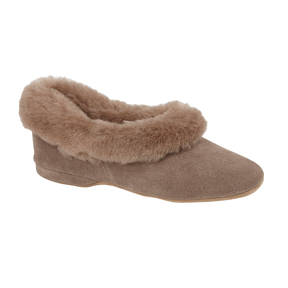 Our classic women's lambswool slippers have a silky suede upper and suede soles. These lambswool slippers from the UK have high-quality lambswool linings and real sheepskin collars. Made in England. (For our premium sheepskin lined version, see style JANE)