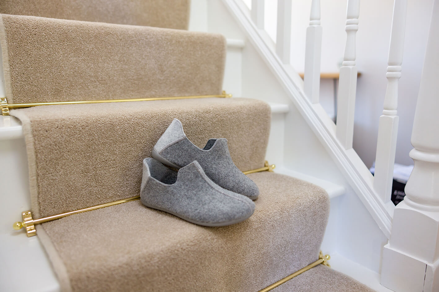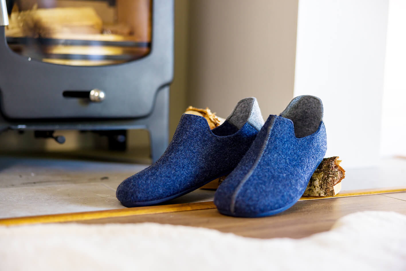 Our eco felt slipper boot. With a felt upper made from 100% recycled materials, 20% of which is plastic collected from the sea (PET). It has a flexible rubber sole. Designed in the United Kingdom, made in Spain.