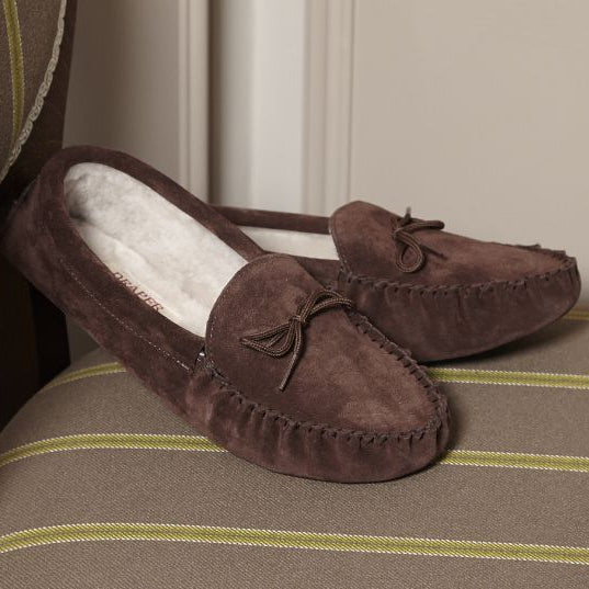 Our classic soft sole moccasins. These sheepskin moccasins are the ultimate in comfort and traditional style. These sheepskin moccasins have the finest quality sheepskin lining and silky suede upper. Hard wear and comfort are the features of these high-quality leather moccasins. Made in England.