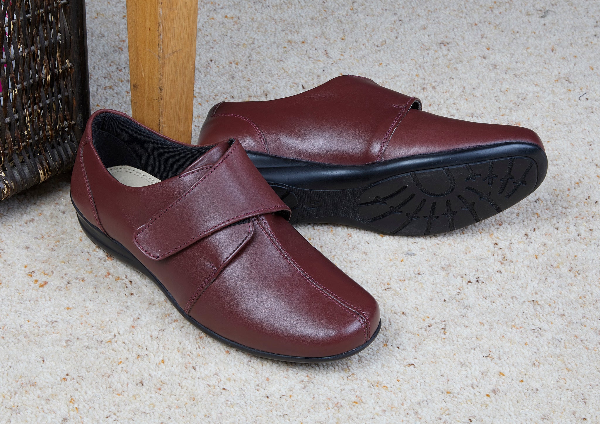 A high quality ladies shoe. Made with a waterproof leather upper, leather insole and hard wearing sole. Velcro fastening. E Fitting (wide).