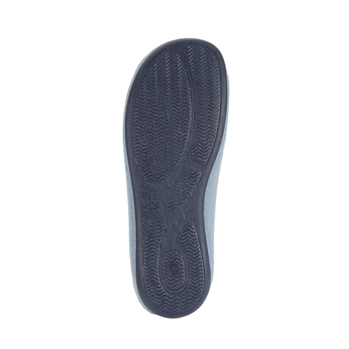 Our eco felt slipper for women. With a felt upper made from 100% recycled materials, 20% of which is plastic collected from the sea (PET). It has a flexible rubber sole. Designed in the United Kingdom, made in Spain.