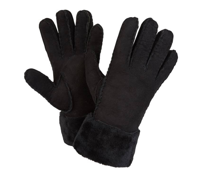 SHEEPSKIN CUFF GLOVES BLACK SUEDE